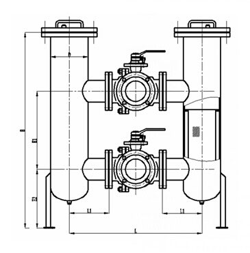 雙聯(lián)切換式過濾器,采用兩個(gè)三通球閥,將兩個(gè)單筒過濾器組裝在一個(gè)機(jī)座上,清洗過濾器時(shí)不必停車,確保其連續(xù)工作。